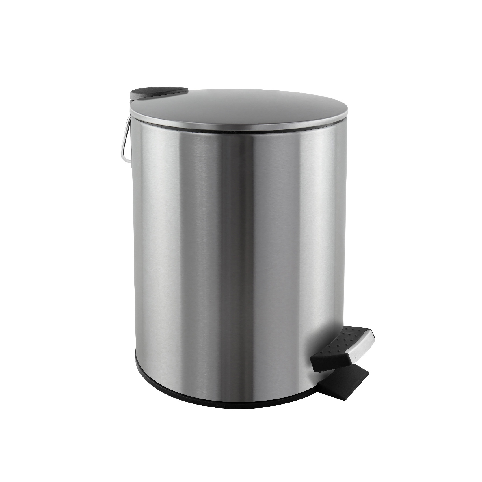 Pedal operated bin with soft-close system Plastic interior container with handle Material : Stainless steel with expoxy Color : Matt Dimensions : Ø208 x H.265 mm
