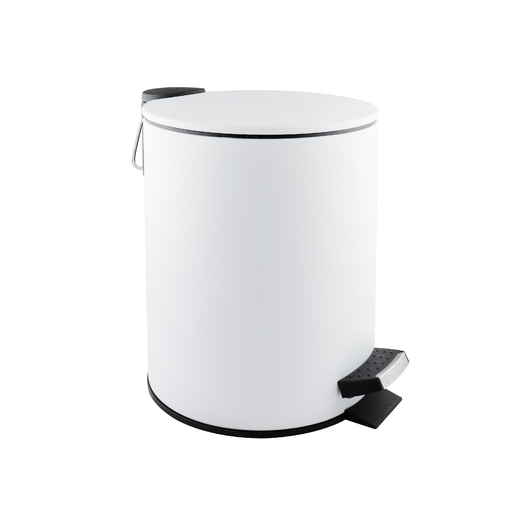 Pedal operated bin with soft-close system Plastic interior container with handle Material : Stainless steel with expoxy Color : Matt White Dimensions : Ø 220 x H.240 mm