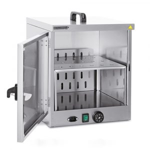 Adjustable termostat Suitable for plates max Ø 32 cm Intermediate perforated sheld Material : Stainless steel Power : 400 W, 230 V, 50/60 Hz Temperature : +30-+90°C Dimensions : 390 x 460 x H.510 mm